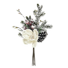 20" Snow Magnolia Bouquet with Red Berries - Larksilk